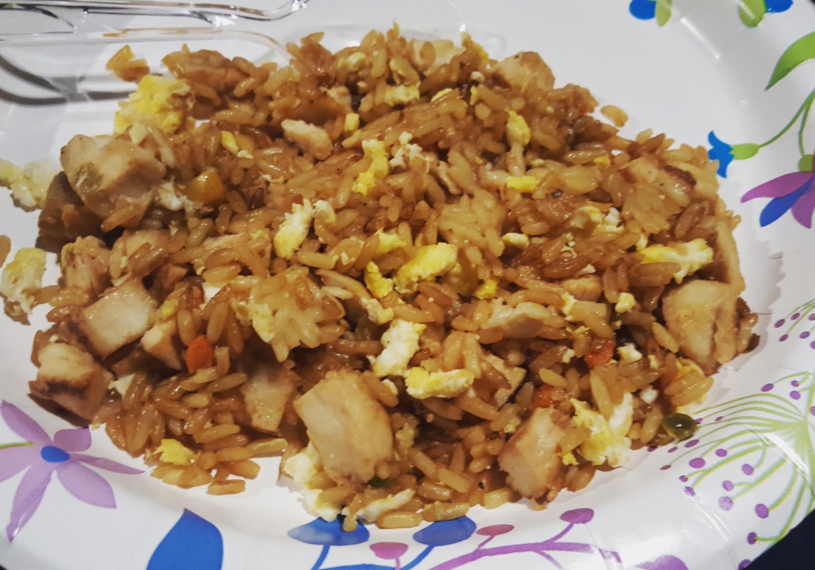 Basic chicken salad: romaine lettuce mix, grilled chicken, corn, bacon bits, cheese, and a light drizzle of thousand island .